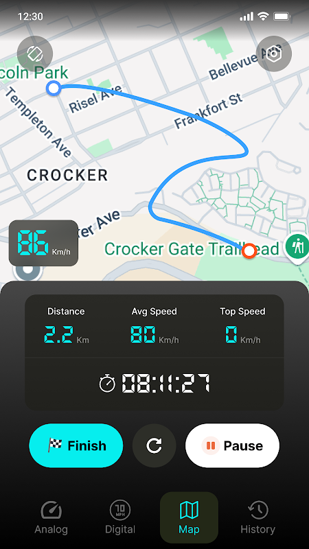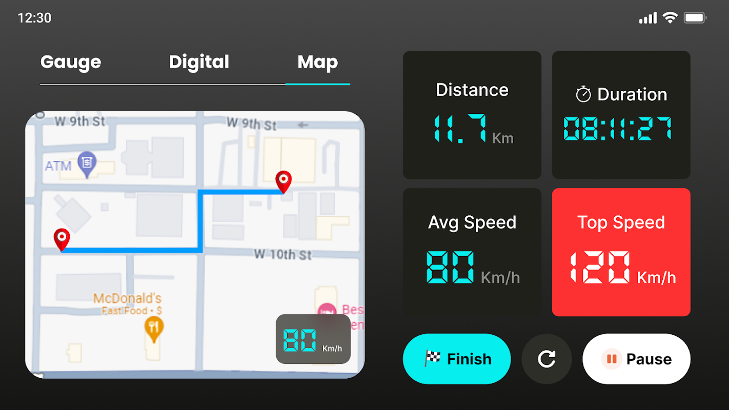 Switch between sleek digital or classic analog speedometer displays to match your style. Designed for intuitive use, it functions like a car dashboard to track your speed with a speedometer odometer.