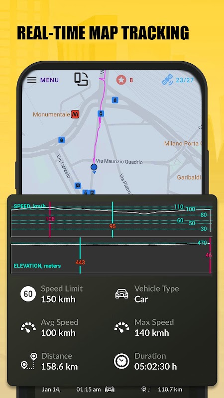 - Digital GPS Speedometer odometer features a map recording your trail