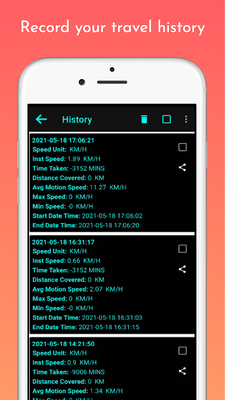 แอปพลิเคชั่นมาตรวัดความเร็วที่มีคุณสมบัติมากมายสำหรับ Android ซึ่งบันทึกความเร็วและระยะทางทันทีที่ครอบคลุมโดยใช้ GPS หรือเครือข่ายโทรคมนาคม แอปพลิเคชันมีกรณีการใช้งานที่หลากหลายเช่นการคำนวณความเร็วในการขับขี่ / ขี่จักรยานความเร็วในการวิ่งจ็อกกิ้ง / วิ่งและการวิเคราะห์ประวัติการเดินทางที่บันทึกไว้