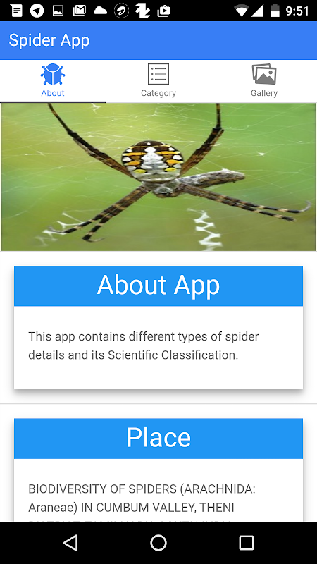 This app contains different types of spiders and their Scientific Classification