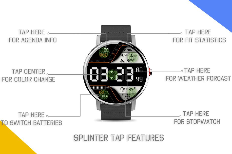 หน้าปัดนาฬิกา Splinter เป็นหน้าปัดนาฬิกาดิจิทัลแห่งอนาคตใหม่สำหรับ Wear OS Smart Watch และนาฬิกาโทรศัพท์วอลเปเปอร์สด
