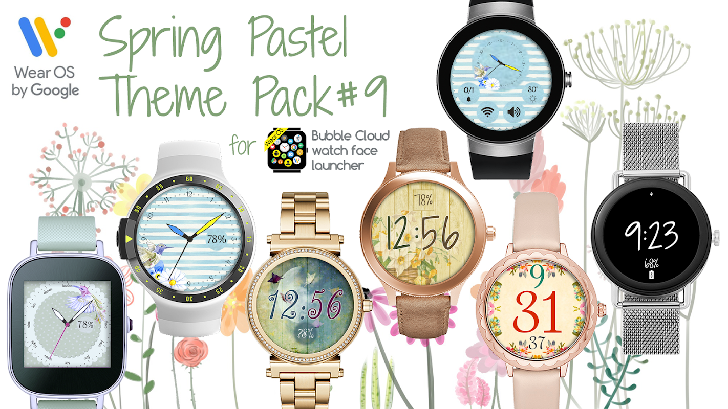 ธีมแพ็ค 9 สำหรับฟองเมฆนาฬิกาเปิดหน้า: 5 เวลาฤดูใบไม้ผลิรูปแบบที่ 1 คลิก