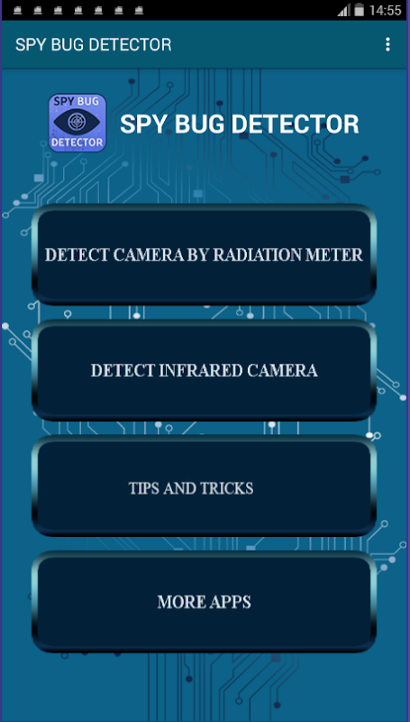 Protect your privacy with the NEW most Advanced spy bug finder and detector with which you can detect microphone, detect hidden camera and bug or similar surveillance device which may exist in the room or in your house/ office and you have no idea about it. Easy to use app to detect surveillance device for Free