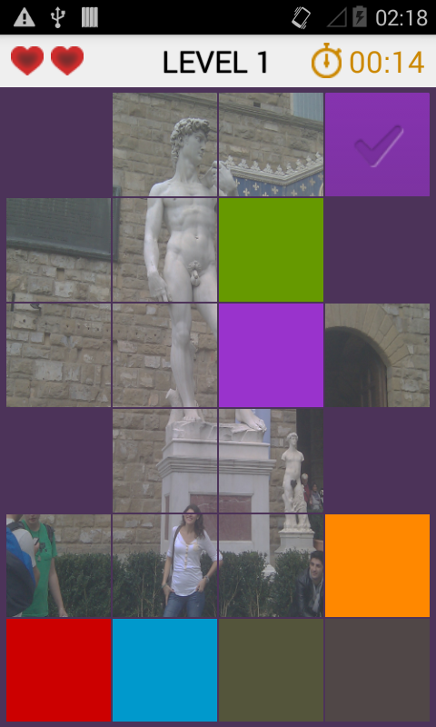 The game will randomly select an image from your gallery, which will be shown once completed the board.