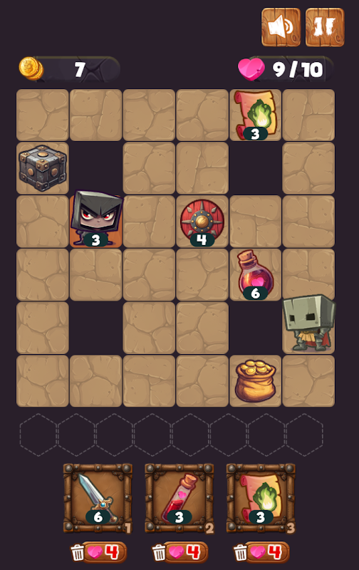 ทุกการเคลื่อนไหวมีความสำคัญเมื่อคุณวางกลยุทธ์บนกระดานแบบตาราง ต่อสู้กับศัตรู เก็บของ และรวบรวมอุปกรณ์