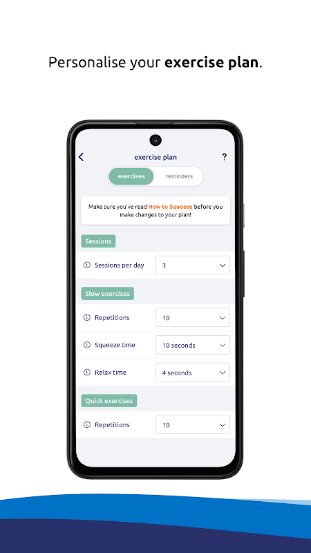 Squeezy ใช้งานง่าย ให้ข้อมูล และออกแบบมาเพื่อช่วยให้ผู้หญิงจำไว้ว่าต้องออกกำลังกายกล้ามเนื้ออุ้งเชิงกราน (หรือที่เรียกว่าการออกกำลังกาย Kegel)