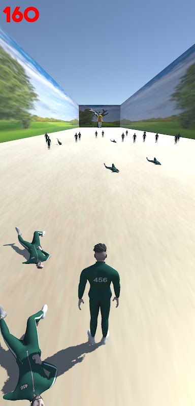 It's offline 3D game and it's inspired by the Squid Game series. All characters are 3D. A fantastic 3D game experience. All players have their own number. When player die he will scream and blood particle effect will play. Player have animations: Idle, Run, and Dying. In game are Squid Game workers with their idle animation. And Squid Game doll has rotation animation.