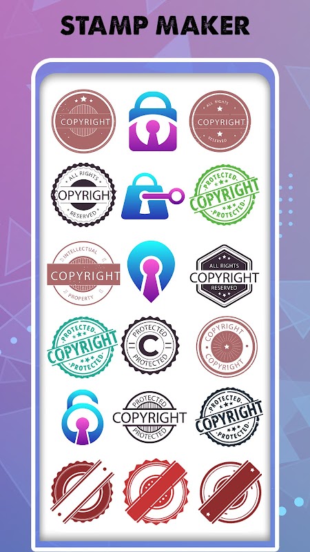 แอพ Stamp Maker ให้คุณสร้างแสตมป์ส่วนตัวและลายน้ำแบบกำหนดเองบนภาพถ่ายลิขสิทธิ์ของคุณ บันทึกงานศิลปะที่สำคัญของคุณจากการใช้งานโดยไม่ได้รับอนุญาต คอลเลกชันตัวเลือกแสตมป์ที่สร้างไว้ล่วงหน้าเพื่อเพิ่มข้อความและการปรับแต่งมากมาย คุณสามารถปรับแต่งข้อความ หมุน พลิก และลบได้ แอพสร้างตราประทับดิจิทัลที่ดีที่สุด เพิ่มสติกเกอร์จากคอลเลกชันสติกเกอร์ขนาดใหญ่และรูปแบบตราประทับต่างๆ เพื่อทำให้เอกสารดิจิทัลของคุณน่าเชื่อถือและเป็นมืออาชีพ