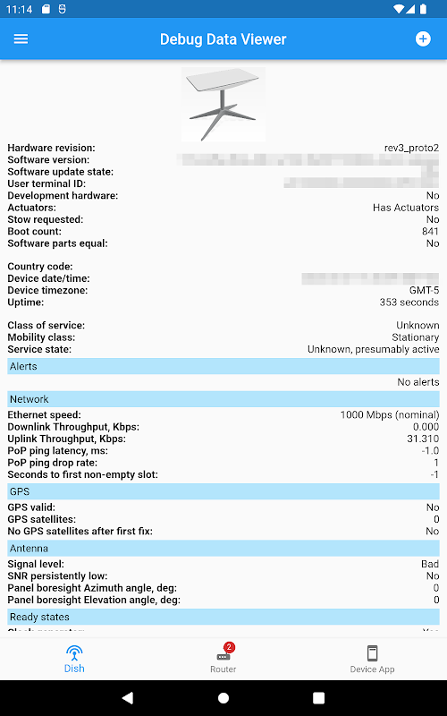 - ถอดรหัสและดู DebugData json ที่คัดลอก (หรือบันทึกเป็นไฟล์) จากแอป Starlink หรือแผงเว็บอย่างเป็นทางการ