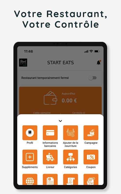 ควบคุมได้เพียงปลายนิ้วสัมผัส: คุณไม่สามารถอยู่ในร้านอาหารของคุณได้เสมอไปใช่ไหม ไม่มีปัญหา ! Start Eats ช่วยให้คุณสามารถยกเลิกคำสั่งซื้อ รายงานอาหารที่หมดสต๊อก และจัดการการจัดส่งได้จากทุกที่ ตราบใดที่คุณมีการเชื่อมต่ออินเทอร์เน็ต ร้านอาหารของคุณอยู่ในมือคุณอย่างแท้จริง