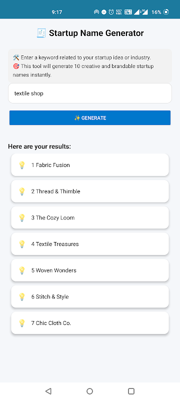 **ไอเดียสตาร์ทอัพ** คือชุดเครื่องมือสร้างไอเดียสตาร์ทอัพที่ขับเคลื่อนด้วย AI ฟรี ซึ่งประกอบด้วยไอเดียทางธุรกิจที่จัดหมวดหมู่ การสร้างชื่อทันที การวิเคราะห์แนวโน้ม และอื่นๆ อีกมากมาย ไม่ว่าคุณจะเป็นนักเรียน ผู้ก่อตั้งเดี่ยว หรือผู้ประกอบการต่อเนื่อง แอปนี้จะช่วยให้คุณสำรวจ วางแผน และสร้างสรรค์อย่างชาญฉลาดยิ่งขึ้น