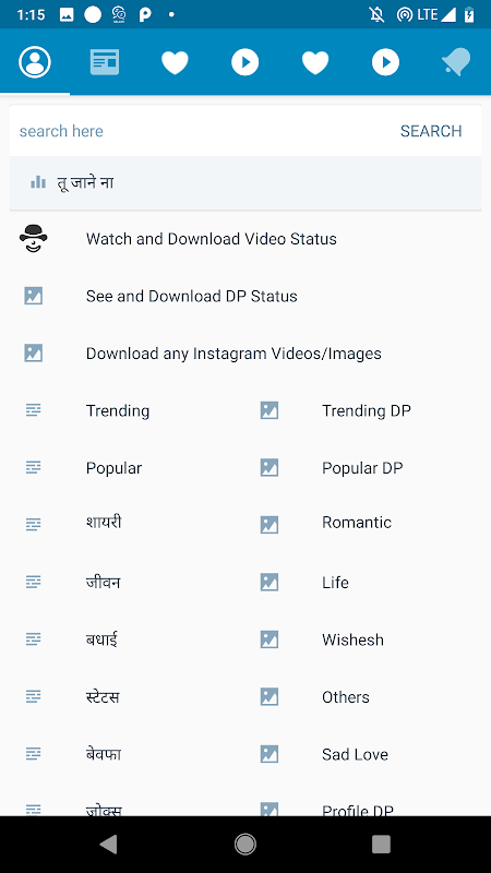 This app has good collection of shayari, profile pics, DP status and Video Status. :)