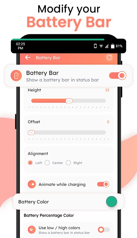 ปรับแต่งไอคอนแถบสถานะ ตัวเลื่อนสไตล์ และเปลี่ยนความสูงด้วยท่าทางสำหรับการดำเนินการทางลัดต่างๆ แสดงแถบแบตเตอรี่ด้านบนแถบสถานะและด้านล่างพร้อมตัวบ่งชี้