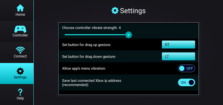 แอพนี้ตอบสนองในฐานะตัวควบคุมพวงมาลัย เมื่อคุณเชื่อมต่อกับ xbox ของคุณด้วยแอพและคุณเปลี่ยนการควบคุมแอพเป็นโหมดพวงมาลัยคุณสามารถหมุนสมาร์ทโฟนของคุณเป็นพวงมาลัยและควบคุมรถของคุณในเกมแข่งรถ xbox ได้เหมือนพวงมาลัย ตัวควบคุม