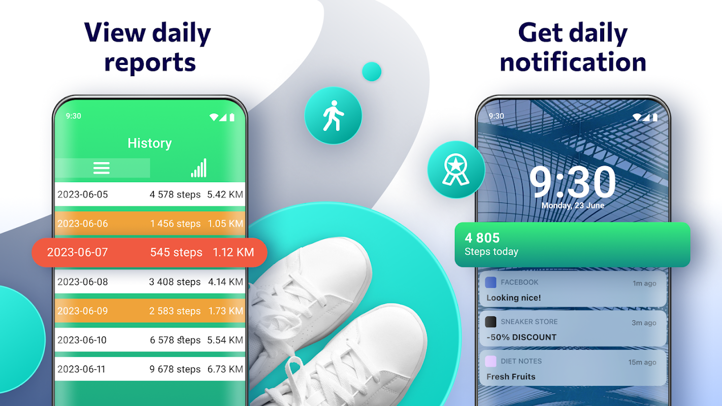 Pedometer - Step Tracker functions as your personal fitness journal, recording all your walking activities throughout the day. Count my steps tool - access your step history and view detailed graphs to understand your activity patterns better. By analyzing your data, you can identify areas for improvement and make necessary adjustments to your fitness routine.
