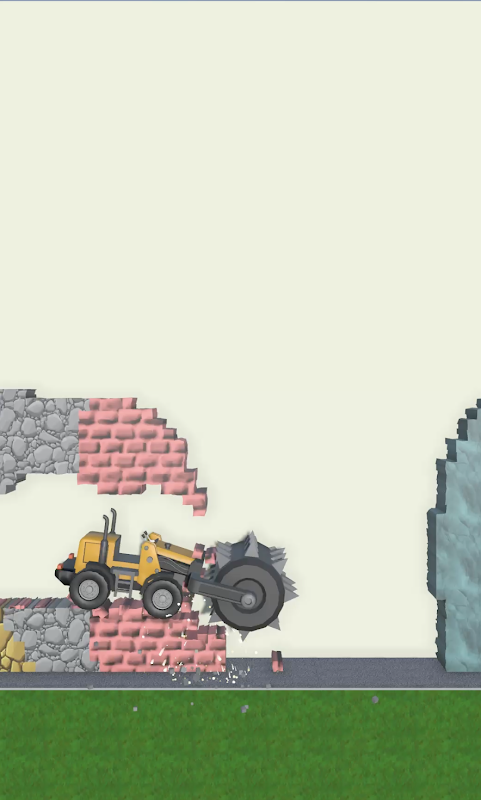 Drive your truck and use your power grinder to destroy the cities, buildings.