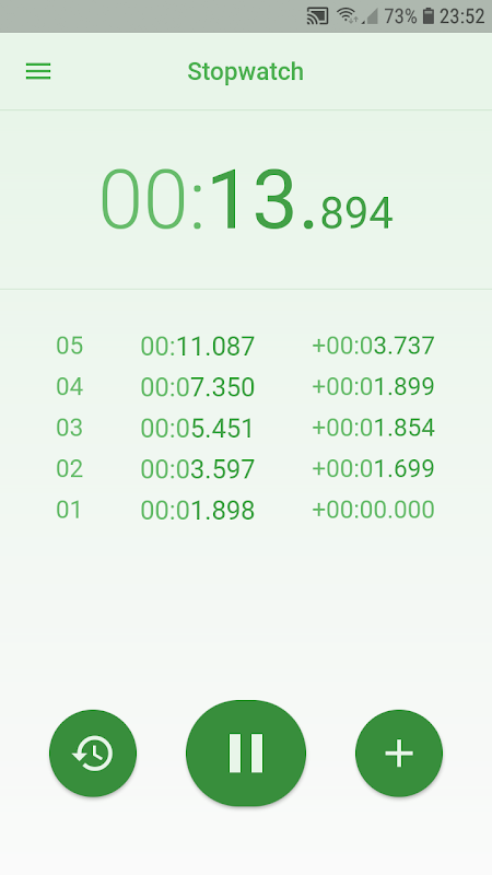 นาฬิกาจับเวลายังวัดชั่วโมงที่แสดงเฉพาะเมื่อเวลาที่วัดได้เกินหนึ่งชั่วโมง แอพสามารถทำงานในพื้นหลังโดยไม่ต้องเปลืองแบตเตอรี่