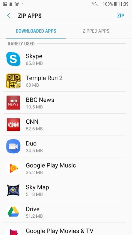 ปพลิเคชันซิปเพื่อเพิ่มประสิทธิภาพการจัดเก็บ บริการพื้นหลังสำหรับปพลิเคชันที่ไม่ได้ใช้ ผู้ใช้จะไม่ได้รับการแจ้งเตือนใด ๆ จากแอพพลิเคซิป ปพลิเคชันซิปสามารถเรียกคืนกับข้อมูลของผู้ใช้โดยการขยายไฟล์จากโฟลเดอร์หรือแอพพลิเคซิปซิปรายการ
