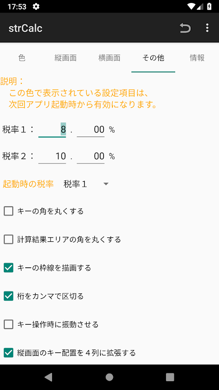 ・「税率」キーを追加(税率1と税率2を切り替えるキー)