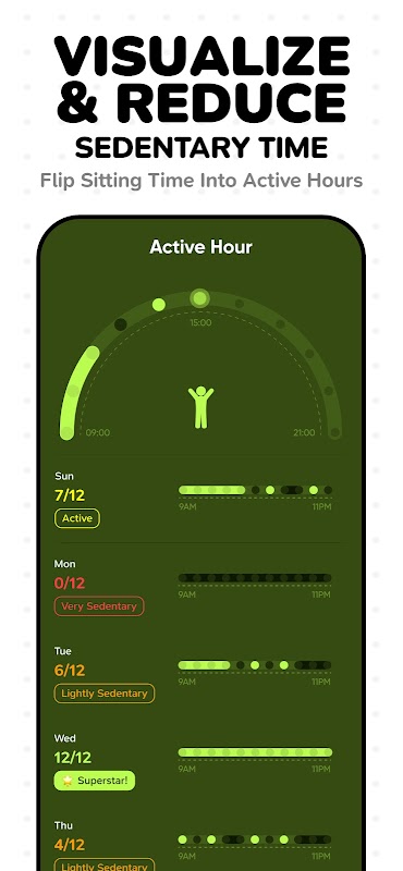 • รับการแจ้งเตือนที่ปรับให้เหมาะกับตารางเวลาของคุณ เพื่อให้มั่นใจว่าคุณจะเคลื่อนไหวได้อย่างสม่ำเสมอโดยไม่รบกวนกิจวัตรการทำงานของคุณ