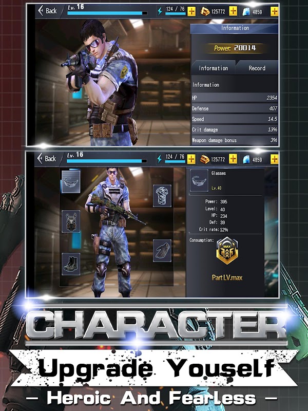 * ระบบอัพเกรดตัวละครที่ไม่ซ้ำกันทำให้ตัวละครของคุณมีพลังมากขึ้นในสงครามรับความเสียหายมากขึ้นและสร้างไฟออกมากขึ้น!