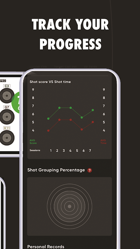 ส่วนประวัติมีภาพหน้าจอ เมตริกการยิง และกราฟเพื่อให้ผู้ใช้ติดตามความคืบหน้า ซึ่งรวมถึงคะแนนเฉลี่ย ระยะการยิงเฉลี่ย จำนวนการยิงทั้งหมด และเซสชันทั้งหมด ข้อมูลจะแสดงบนฮิสโทแกรมและแผนภูมิวงกลม ข้อมูลนี้จะถูกบันทึกไว้ในไฟล์เก็บถาวร