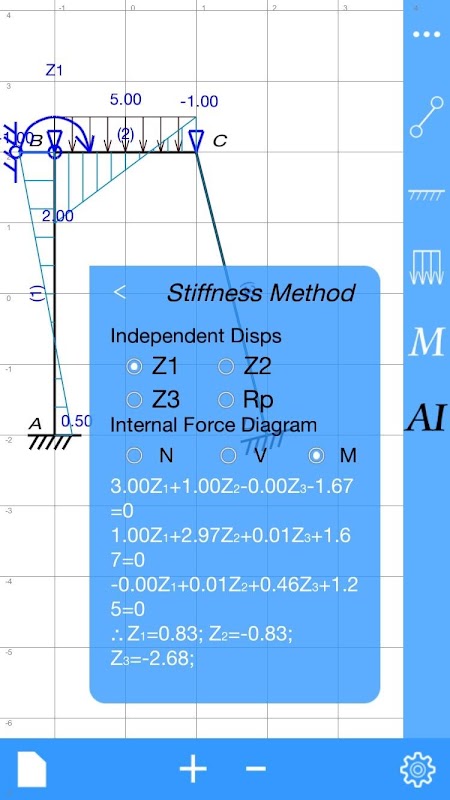ฟังก์ชั่นที่มีประสิทธิภาพภายในสามารถจัดการกับแผนภาพภายในแรงสถิตศาสตร์การเปลี่ยนแปลงสายที่มีอิทธิพลและการวิเคราะห์เสถียรภาพ ส่วนข่าวกรองสามารถให้รายละเอียดขั้นตอนการแก้ปัญหา