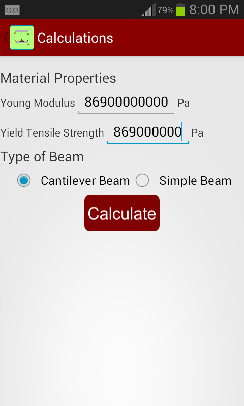 This app calculates the bending stress, the safety factor and the deflection for beams. It also calculates the maximum shear stress and the angle of twist for shafts when a load is applied.This app is perfect for those engineers or any person that wants to know the structural integrity of beams and shafts. It is perfect for engineering students. The only information required is to know the dimensions for the predetermined cross-sections and the forces or torques depending of the case. It is very easy to use, basic knowledge in Mechanics of Materials is required. This app use the International Measurement System as well as the English System.