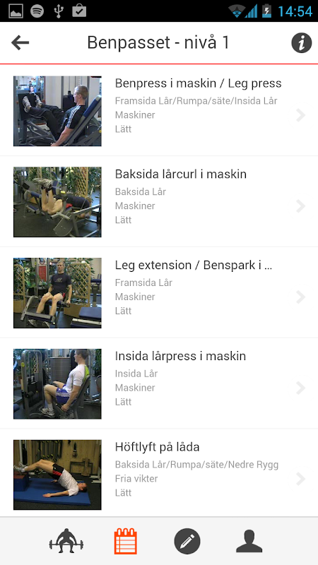 Styrkeprogrammet has over 700 training exercises with videos as well as written instructions. You can combine the exercises into programs. There is also a number of predefined training programs that you can use and articles about training, health and nutrition.