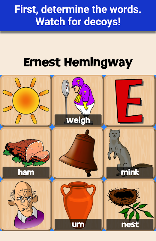 In a traditional rebus game, you determine a phrase from pictures. With Subers, you start with a phrase and must unscramble the pictures to sound like it. But watch out for decoys! Not all of the picture tiles may be needed.