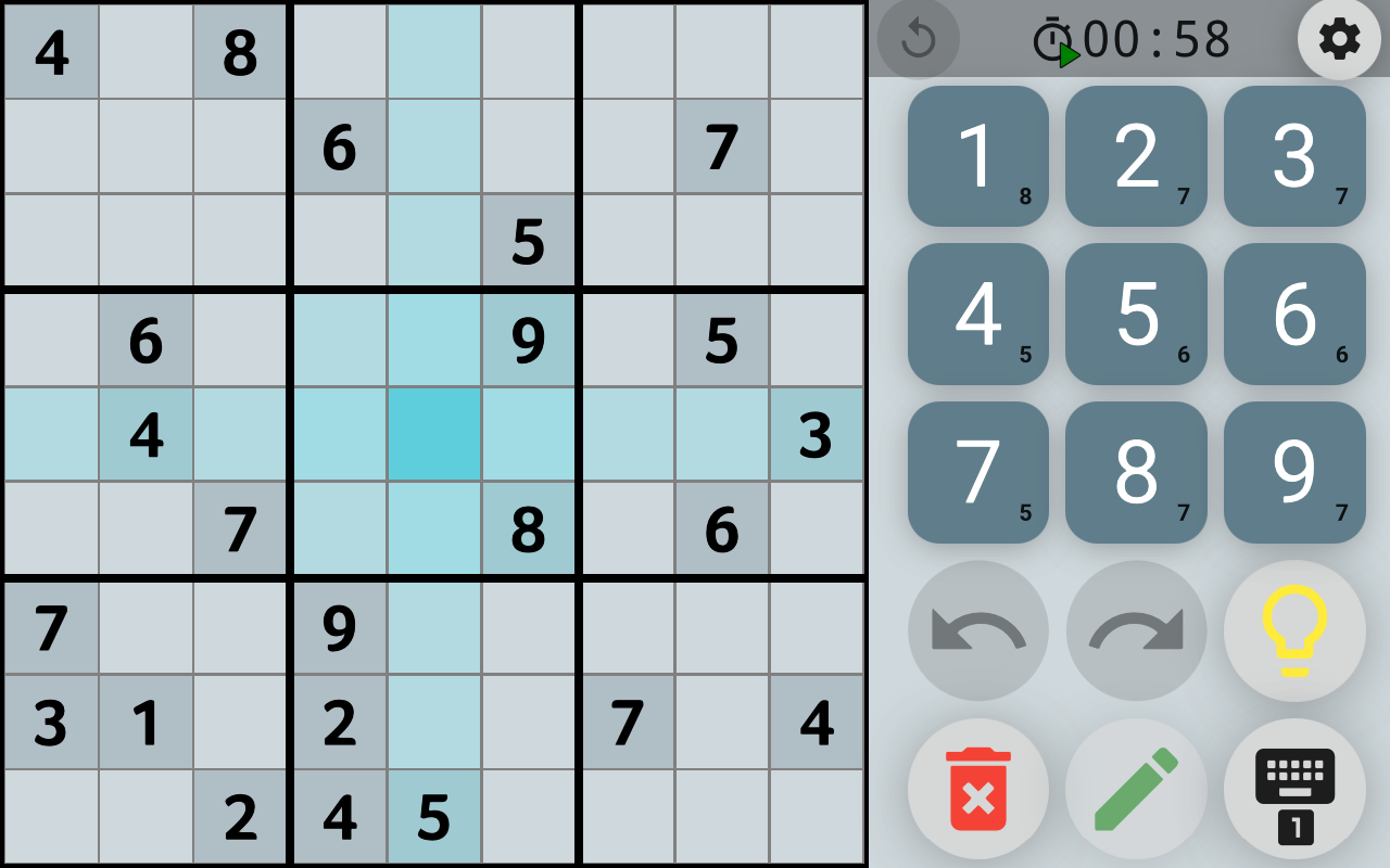 ความสว่างของเซลล์, แถว, คอลัมน์และกลุ่มปัจจุบันจะไม่ทำให้คุณสูญหายในฟิลด์เกมซูโดกุ