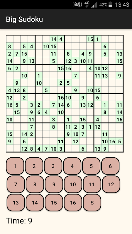 to other users, or solve one of infinitely many random Sudokus. Beginners to experts will always find a challenge. You can even unlock big Sudokus of size 16 x 16.