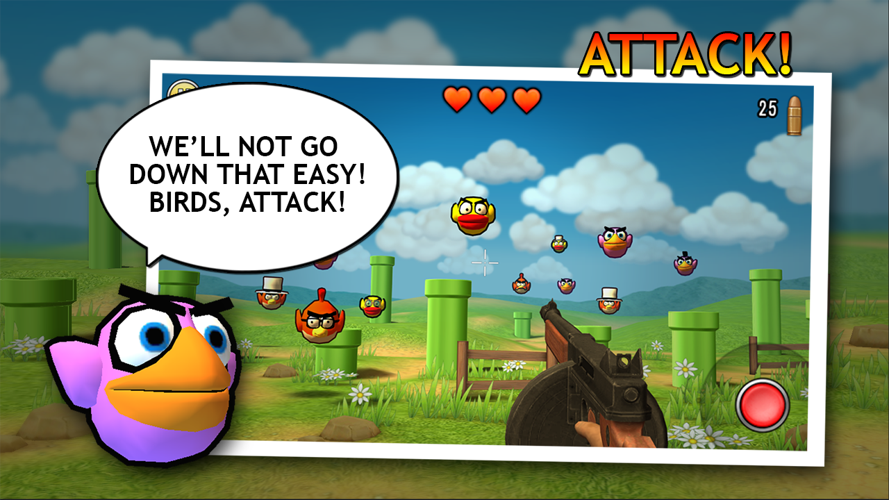 Floppy Bird & Clumsy Bird are back but not in the way you think! Now you'll have the chance to let go of some steam and take it out on them, with an assault rifle! Introducing a new unique colorful 3D environment. - Let the Hunt Begin!