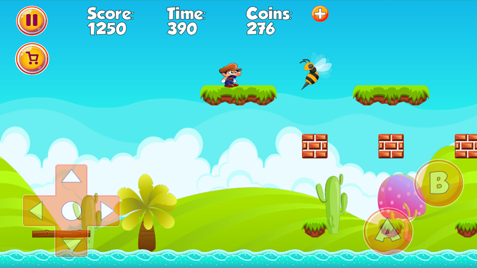 Super Jungle World is the best classic, retro adventure platform game In this Super Jungle World 🍄🍄, must shoot, fight and smash enemies, find items to pass stages. Super jungle World 🍄🍄 runs and jumps across platforms and stops enemies and antagonists during the levels. He has to collect coins in order to buy new lives, or bullets.