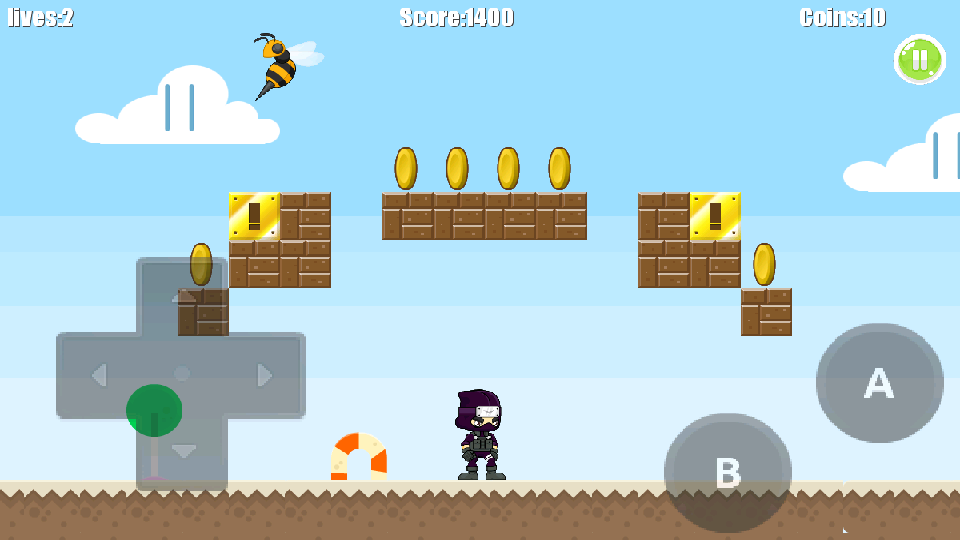Super Ninja is a classical platformer with awesome HD graphics! If you miss the good old game boy games, then this is the game you´re looking for! This game will make you remember great times and have a great time while playing it! Get through all worlds and levels to be a Super Ninja Master!