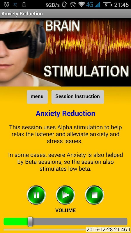 - เซสชันของคุณเอง (อัลฟาสำหรับสำหรับข้อเสนอแนะอัตโนมัติ; ทีสำหรับการเตือนหรือการสะกดจิตสีขาว, สีชมพู, สีน้ำตาลเสียงรบกวนน้ำ, นก, Brainsynchronization พื้นหลัง)