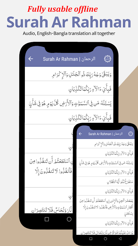 Surah Ar Rahman เป็นหนึ่งในบทที่สำคัญที่สุดของอัลกุรอาน พระศาสดา (ศ็อลลัลลอฮฺ) กล่าวว่าทุกสิ่งมีความงามในตัวเอง Surah Ar-Rahman คือความงามของอัลกุรอานชารีฟ ส่วนบุญก็เท่ากับครึ่งหนึ่งของอัลกุรอาน ผู้ใช้ Android ที่ต้องการท่องและทำความเข้าใจ Surah นี้ 'แอป Surah Ar Rahman' เป็นแอปที่สมบูรณ์แบบสำหรับสิ่งเหล่านั้น