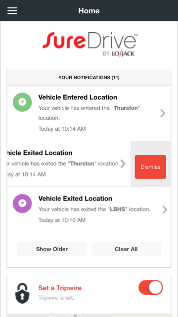 Availability of SureDrive services may depend on cellular coverage, certain functionality may depend on vehicle’s year, make and model. Use is subject to the SureDrive End User License Agreement, and the LoJack Privacy Statement. LoJack and the LoJack logo are trademarks or registered trademarks of LoJack Corporation in the United States and other countries