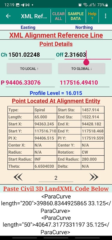 4. วิธีที่มีประสิทธิภาพที่สุดในการจัดการแนวถนน สะพาน หรือทางรถไฟคือการสร้างแนวร่วมที่สมบูรณ์ใน Civil 3D ส่งออกเป็นไฟล์ LandXML แล้วนำเข้าในการตั้งค่าการคำนวณฟิลด์ โปรแกรมนี้ยอมรับข้อมูลการจัดตำแหน่ง Civil 3D LandXML และคำนวณ Local Chainage & Offset <=> Global Easting & Northing ในทางกลับกัน นอกจากนี้ โปรแกรมนี้สามารถให้ผลลัพธ์หลายรายการสำหรับวงจรเริ่มต้นที่กำหนดและช่วงเวลาภายในเส้นโค้ง