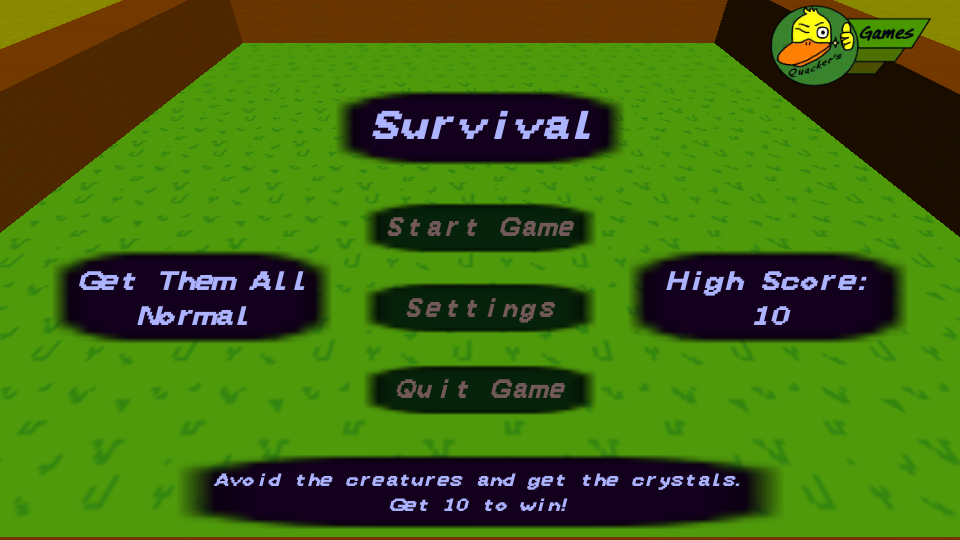 ในการอยู่รอดผู้เล่นจะได้มอบหมายให้กับการค้นหาเวทีสำหรับผลึกสีแดงในขณะที่สิ่งมีชีวิตแห่งความโกลาหลเดินเตร่ฟรี มันคือทั้งหมดที่มากกว่าเมื่อพวกเขาได้รับคุณ พยายามที่จะรับเป็นผลึกมากที่สุดในขณะที่อยู่ออกจากทางของสิ่งมีชีวิตที่ ระยะเวลาที่คุณจะมีอายุในเกมของการอยู่รอดหรือไม่
