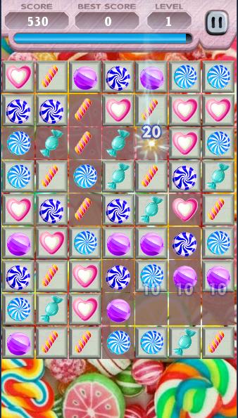 Colorful candies will be smashed when you match 3 of the same color in a line. When match four of the same color candies, the whole line will be eliminated. More of the same color candies together, more amazing effects there will be. Come on and use your head to smash them all!