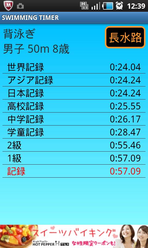 水泳(競泳)競技のための総合アプリ。日本水泳連盟の資格級表示機能付。世界記録や日本記録も閲覧可能。保存やメールでの送信もでき、記録管理に最適なアプリ。
