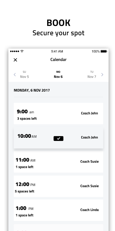 Book your spot with live availability on the app, and just show your booking on the app when you arrive.