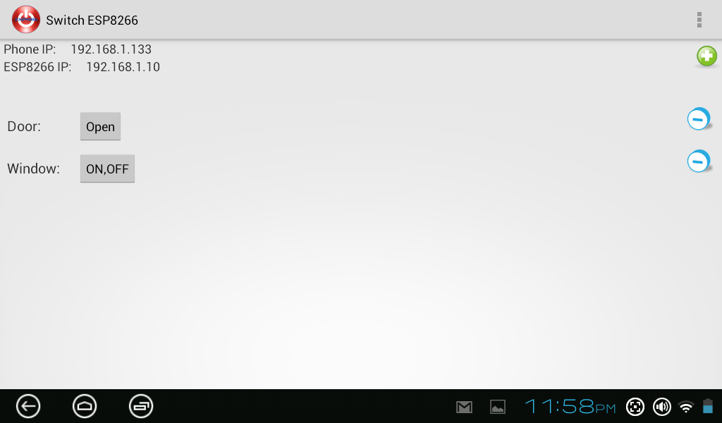 โปรแกรมนั้นง่ายมากคุณมีเพียงตัวเลือกในการกำหนดค่าที่อยู่ IP ของ ESP8266 หรือตั้งค่าตัวเลือก AutoScan เพื่อให้แอปค้นหามันจะแสดงทั้ง IP ของคุณเช่น ESP8266 พร้อมการแจ้งเตือนในกรณีที่ IP ทั้งสองไม่ได้ บน LAN เดียวกันคุณสามารถเพิ่มปุ่ม (คำสั่ง) ได้มากเท่าที่คุณต้องการ