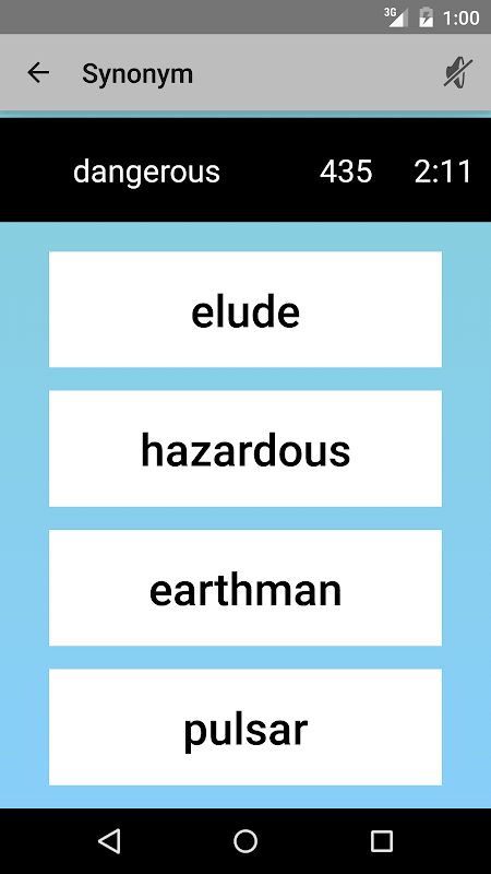 Synonymous is a grammar based word matching game. You are presented with a word, and you have to select the correctly related word from a list of choices. The aim is to get the most points within the time limit.