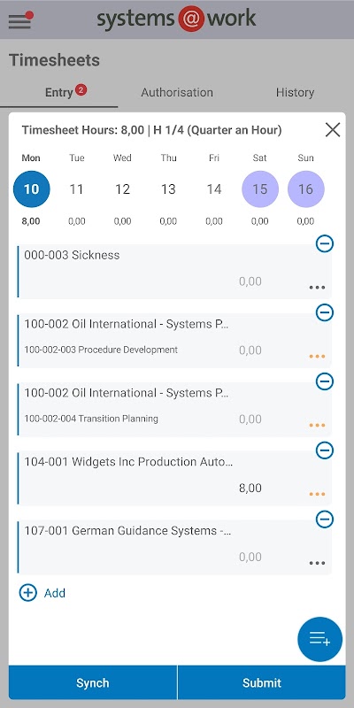 แอพ system@work ช่วยให้ผู้ใช้ในองค์กรของ cost@work, time@work หรือ form@work สามารถป้อนข้อมูลได้โดยใช้แบบฟอร์มและไทม์ชีทที่กำหนดไว้ในฐานข้อมูลขององค์กร