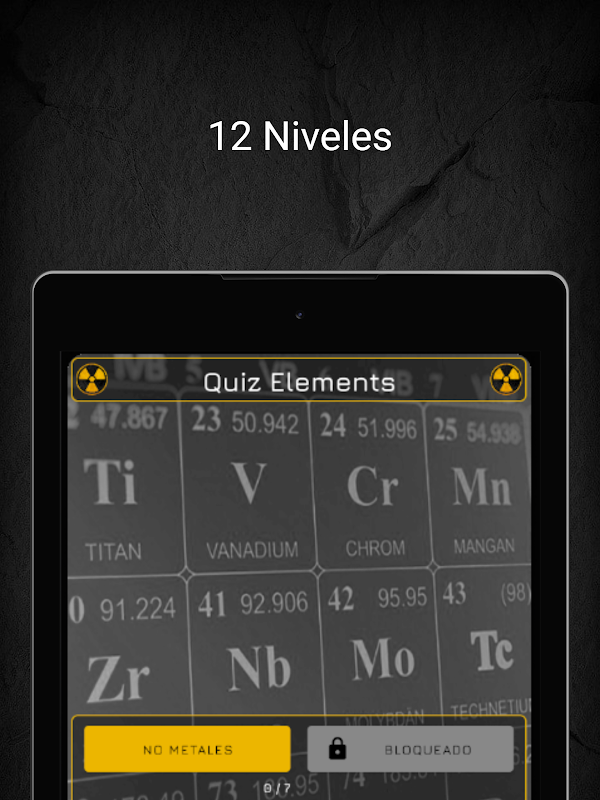 Diferentes niveles para jugar a aprender los elementos químicos con este quiz tabla periodica.