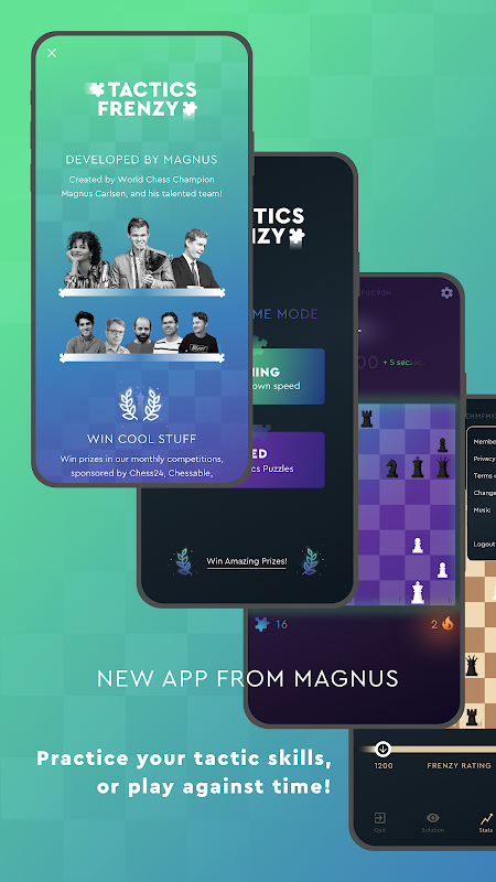 Tactics Frenzy ได้รับการพัฒนาโดยแชมป์โลก Magnus Carlsen, WGM Olga Dolzhikova, GM Jan Gustafsson, GM Jon Ludvig Hammer, GM Aryan Tari และ IM Sebastian Mihajlov