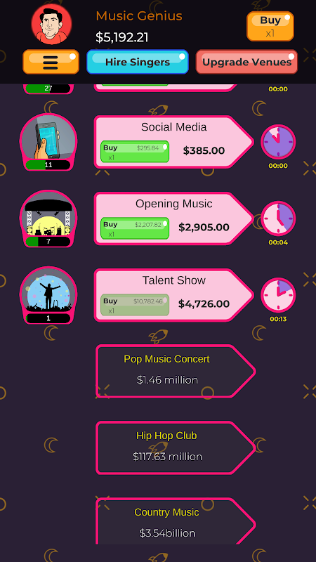 เครื่องมือคลิกเพลงที่ไม่ได้ใช้งานสำหรับเพลง Tycoons