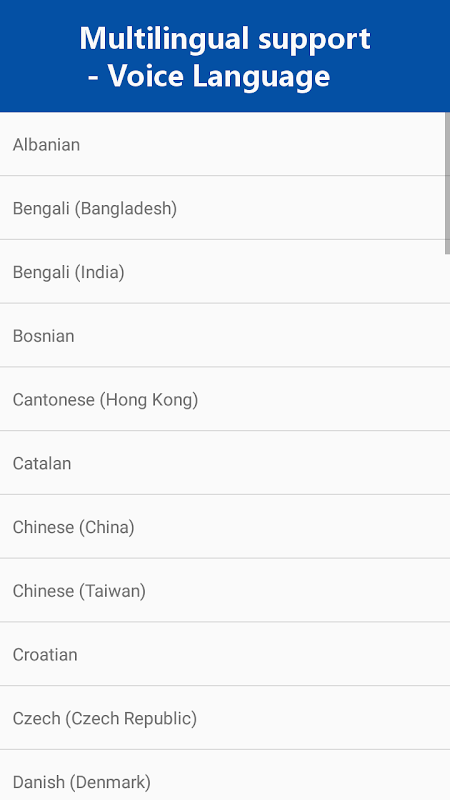 โปรแกรมนี้จะใช้คุณลักษณะของ Google TextToSpeech (TTS) ดังนั้นจึงสามารถใช้หลายภาษา
